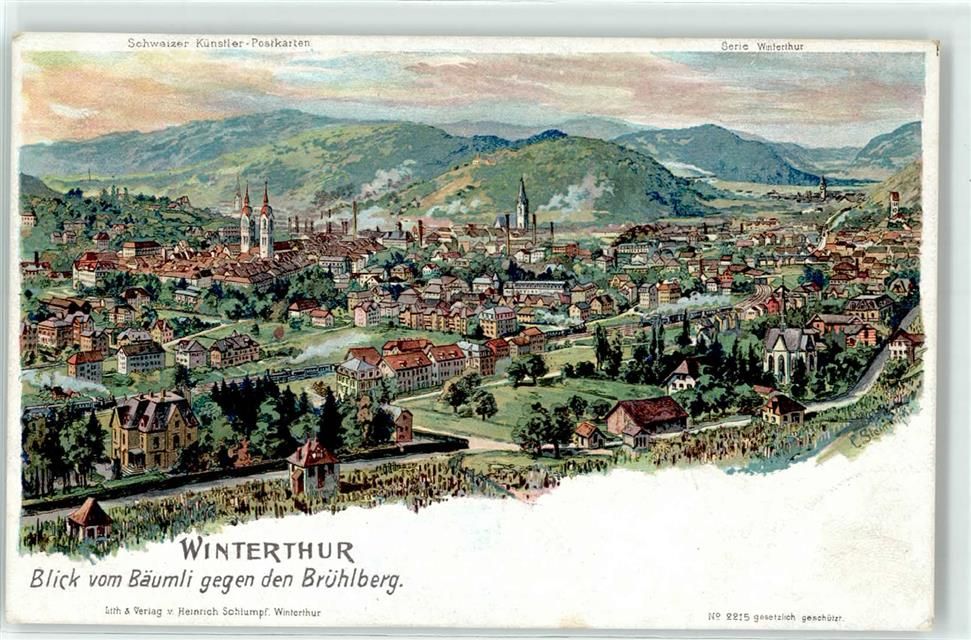 8400 Winterthur Künstlerkarte Blick vom Bäumli gegen den Brühlberg