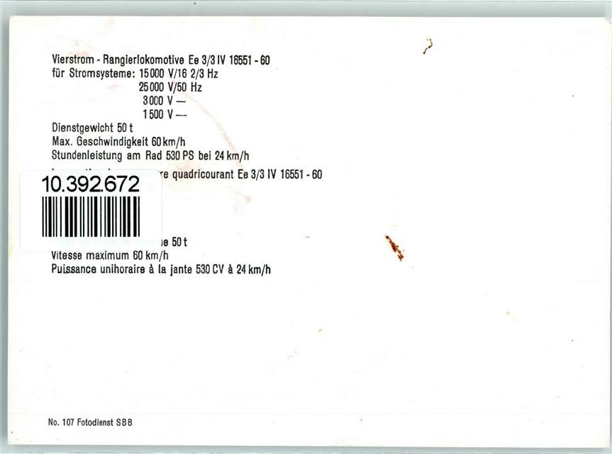 Winterthur, Vierstrom Rangierlok Ee 3/3 IV 16551 - 60 50 t 60km/h