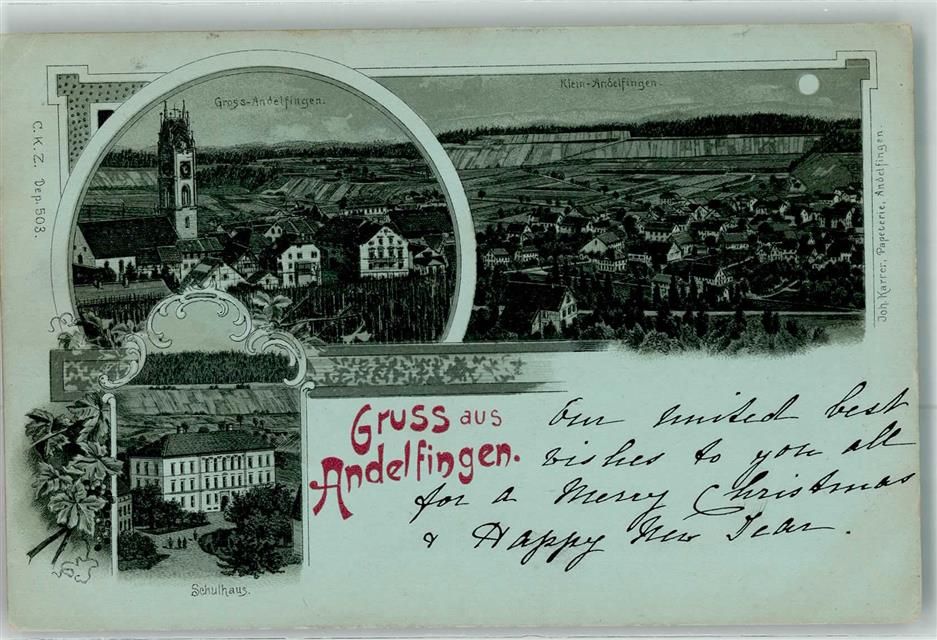 8450 Andelfingen 1900 Lithographie / Mondschein Schulhaus