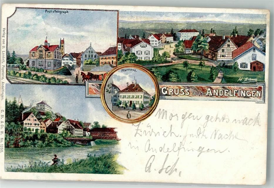 Andelfingen, Postamt Pfarrhaus Bahnpost Zug 2634 Feldpost Dragonerschadron Nr. 17