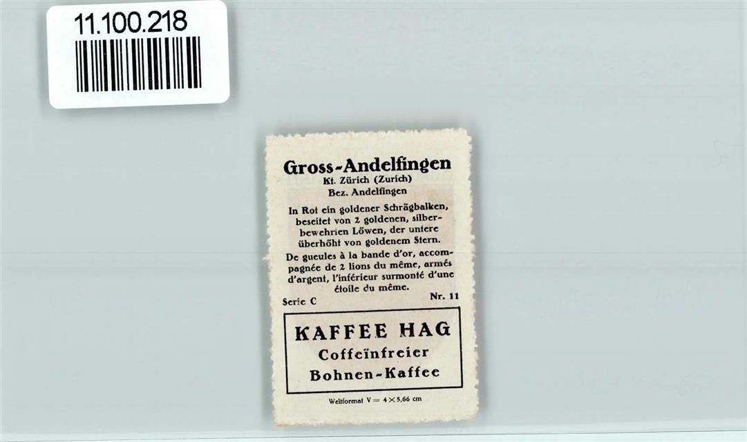 Andelfingen, Vignette Wappen Kaffee Hag ca 1920-1940