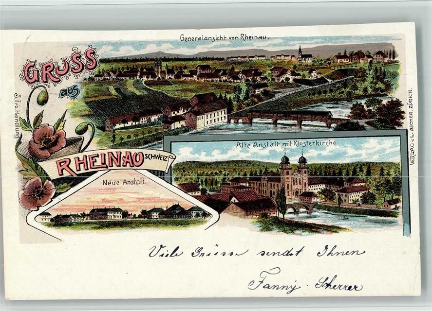 Rheinau, Lithographie Alte Anstalt Klosterkirche Neue Anstalt Beschnitten Gebrauchsspuren, bitte Scan genau beachten!