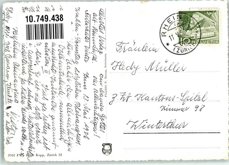 8462 Rheinau 1956 Foto AK Fliegeraufnahme