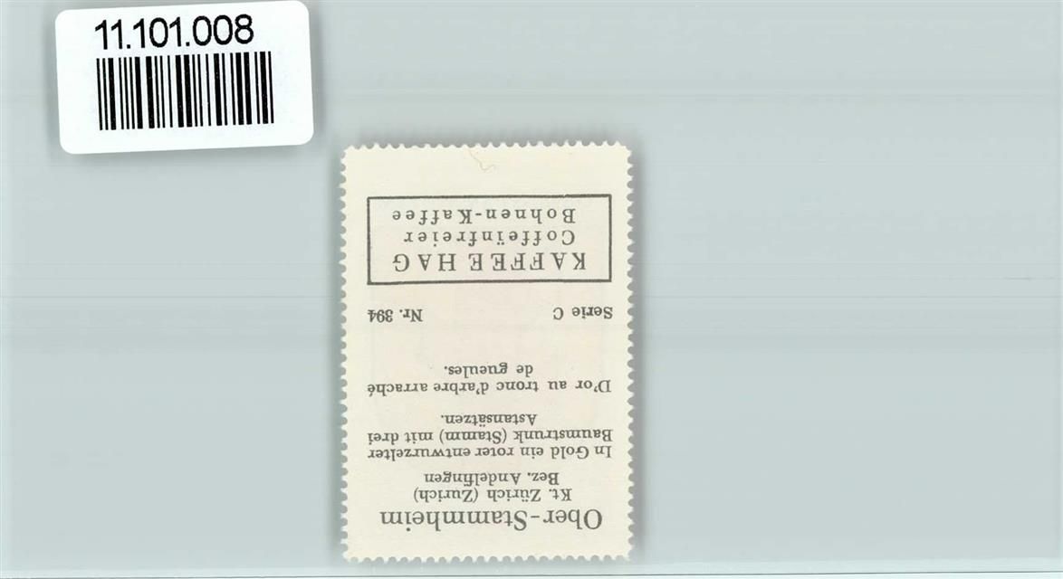 8477 Oberstammheim - Vignette Wappen Kaffee Hag ca 1920-1940 Ober-Stammheim