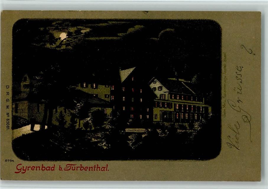 8488 Gyrenbad 1900 Lithographie / Mondschein Gruss aus - 8754 Verlag Gebr. Metz , gute Erhaltung AK