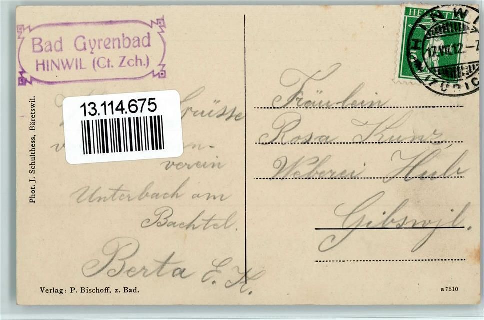 8488 Gyrenbad - 1912 Gasthaus Pension Gyrenbad a. Bachtel