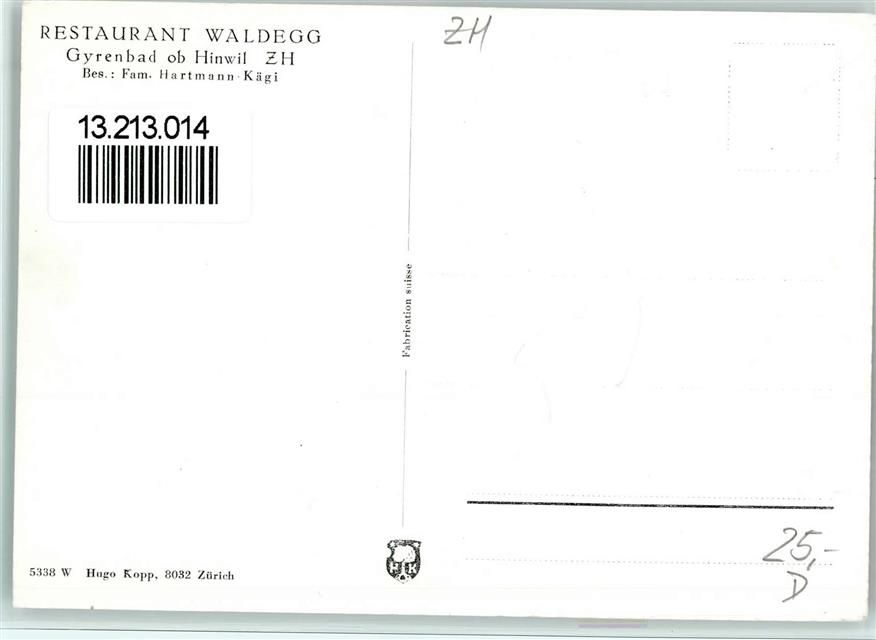 Gyrenbad, Restaurant Waldegg , sehr gute Erhaltung AK
