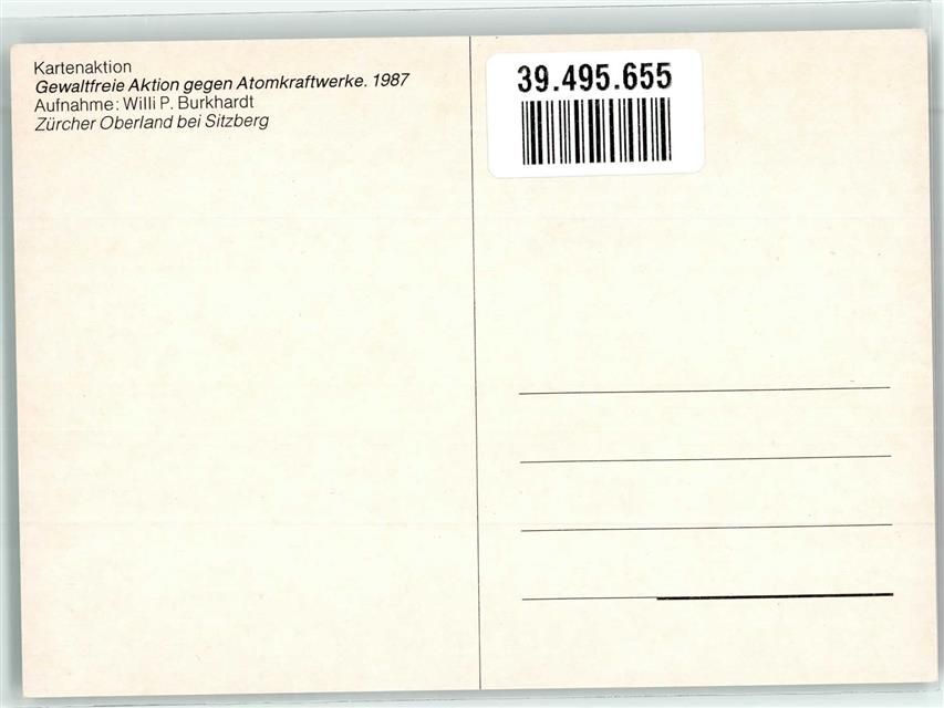 8495 Sitzberg Schmidrüti - Kartenaktion Gewaltfreie Aktion gegen Atomkraftwerke 1987