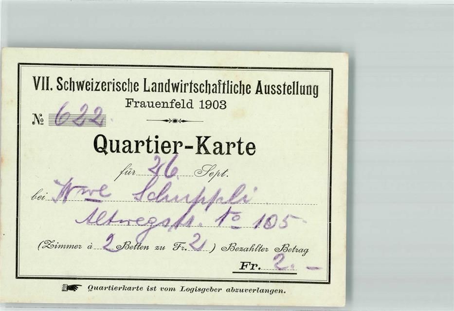8500 Frauenfeld 1903 KEINE AK Quartierkarte Schw. Landwirtschaftliche Ausstellung