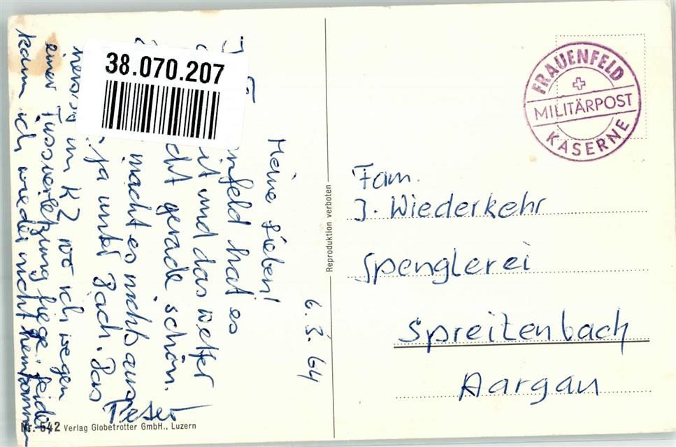 8500 Frauenfeld 1964 Gebrauchsspuren Humor Militär Feldpost Kaserne