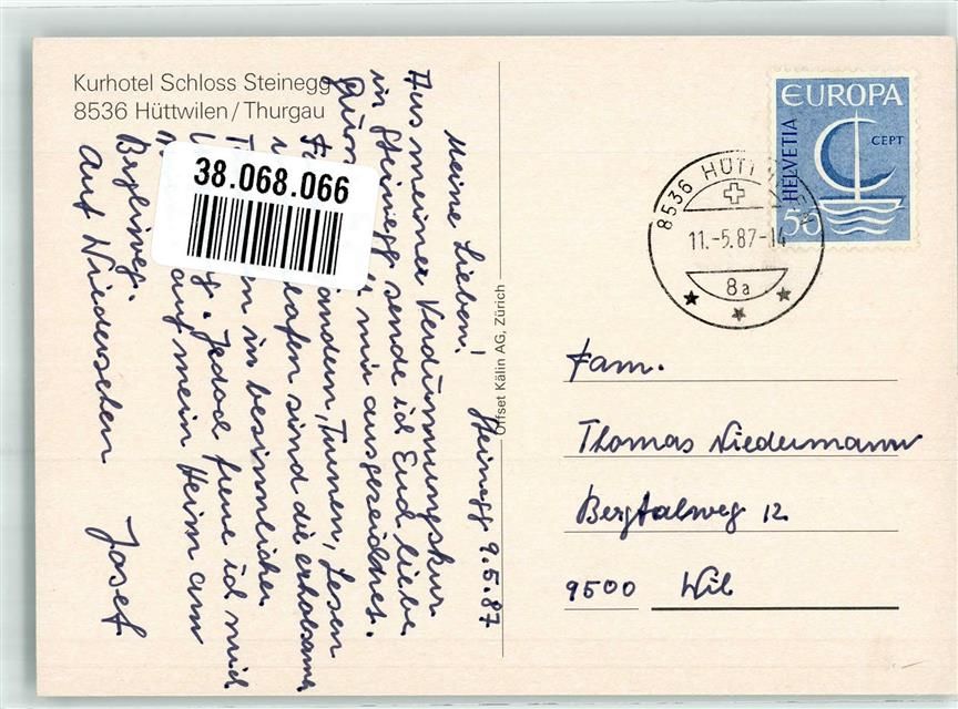 8536 Hüttwilen 1987 Foto AK Schloss Steinegg Kurhotel