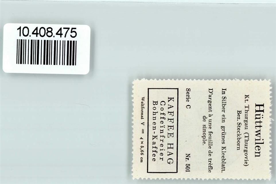 Hüttwilen, Vignette Wappen Kaffee Hag ca 1920-1940 Kleeblatt
