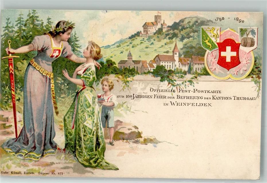 8570 Weinfelden 1898 Lithographie 100 jährige Feier der Befreiung des Kantons Thurgu Helvetia