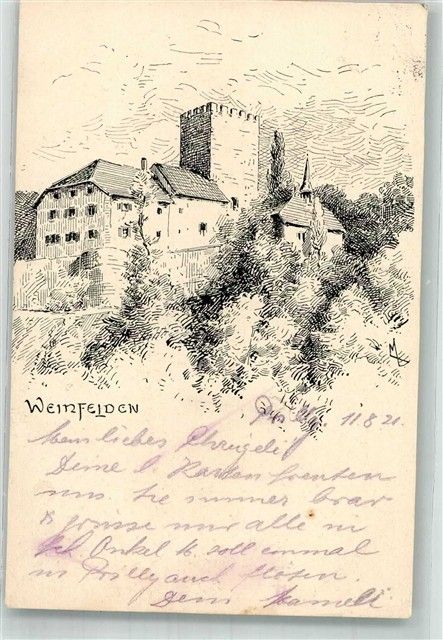 8570 Weinfelden 1921 Gebrauchsspuren Burg Radierung