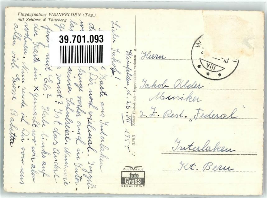 8570 Weinfelden Gebrauchsspuren Fliegeraufnahme Schloss Thurberg Foto Gross
