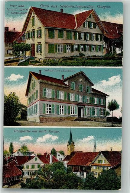 8577 Schönholzerswilen Foto AK Postamt Handlung Sekundarschulhaus Kath. Kirche