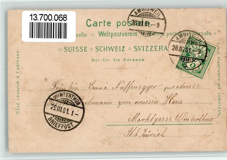 8580 Amriswil 1901 BOAKC Bahnhof Säntistrasse Alpenstrasse Villa Sallmann Lithographie
