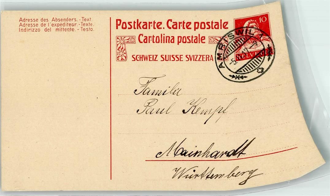 8580 Amriswil 1917 Ganzsache 10 Rappen