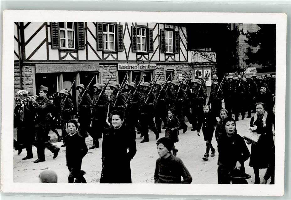8580 Amriswil 1938 Privatfoto AK Militärparade Ort lt. Fotograf