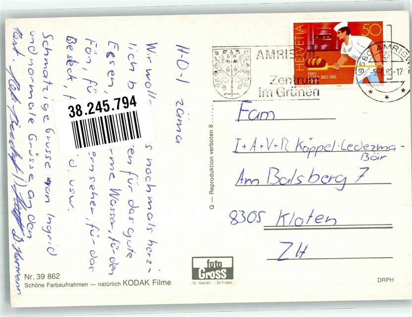 8580 Amriswil 1986 Foto AK Fliegeraufnahme Kirche Marktplatz