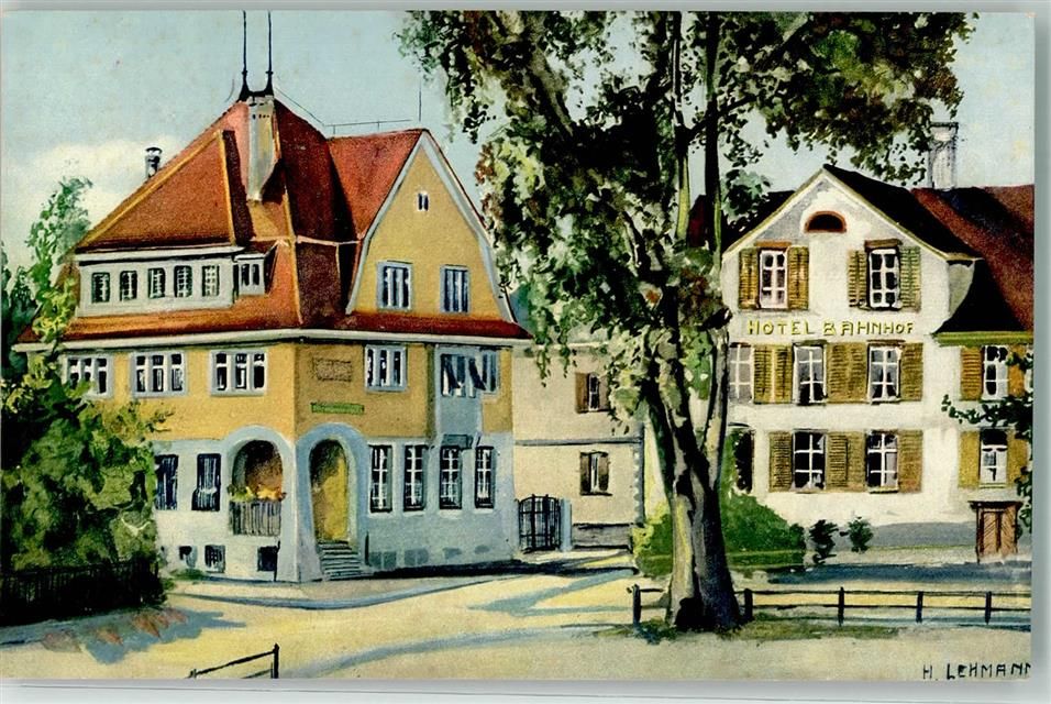 8580 Amriswil Künstlerkarte sign. H.Lehmann Hotel Bahnhof Kanotonalbank