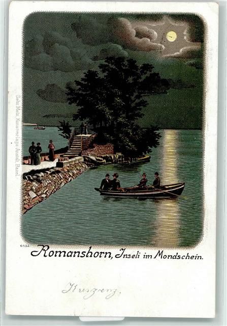 8590 Romanshorn 1904 Lithographie / Mondschein Inseli im Mondschein Ruderboot