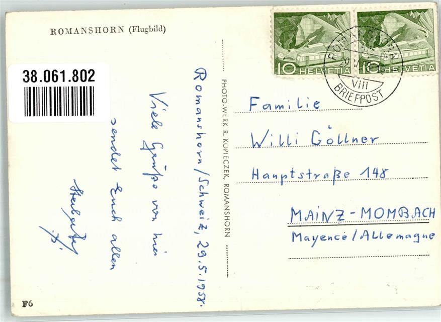 8590 Romanshorn 1958 Foto AK Hafen Kirche