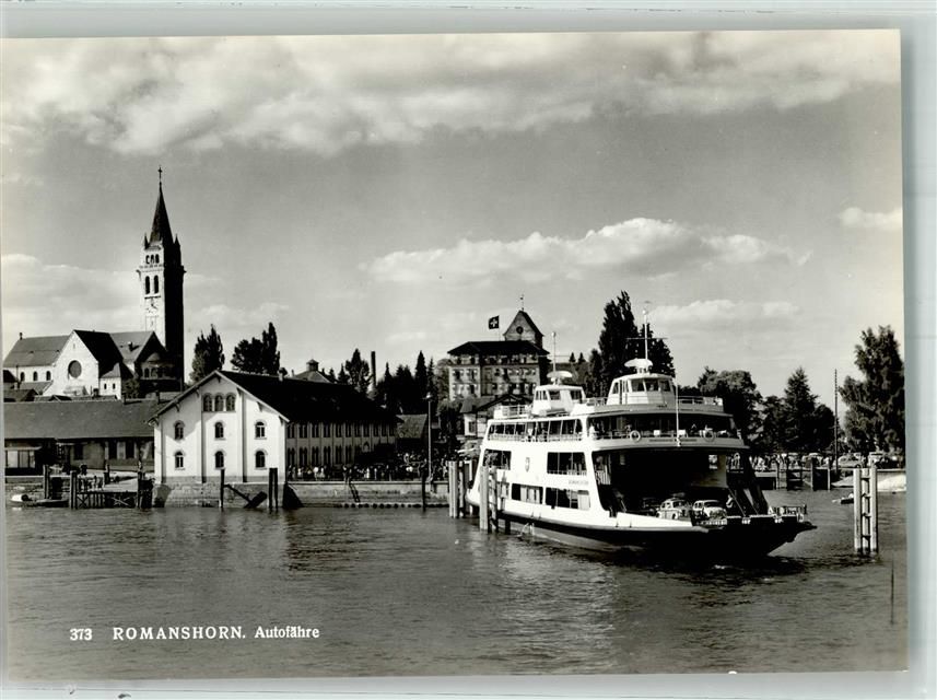 8590 Romanshorn Foto AK Auto- Fähre Hafen Kirche