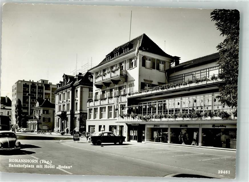 8590 Romanshorn Foto AK Hotel Bodan Bahnhofplatz VW Käfer