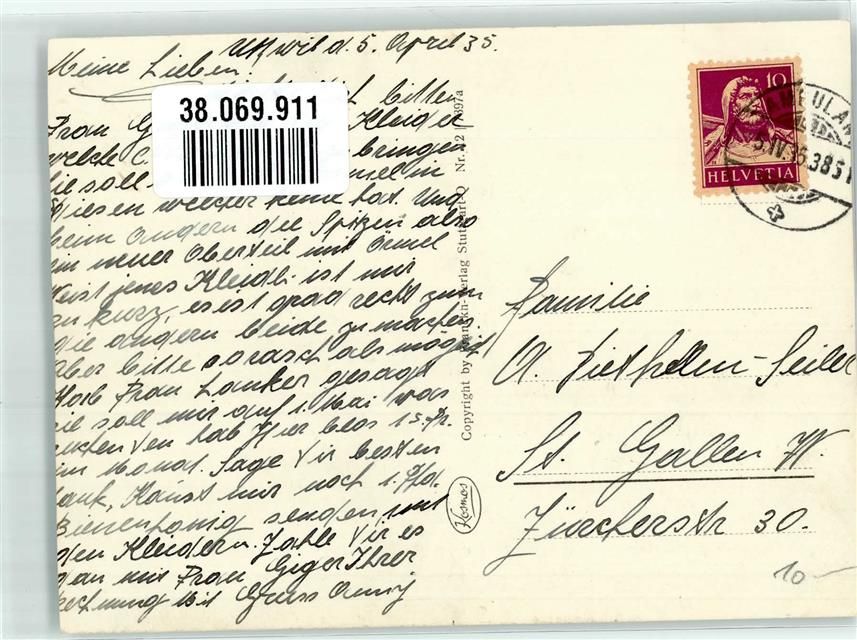 8592 Uttwil 1935 - Bahnpost Zug 3851
