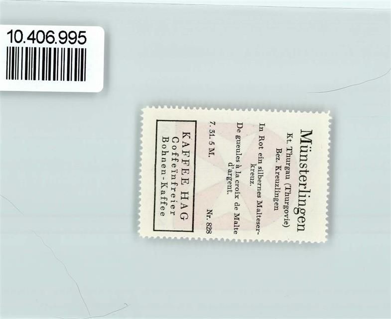 Münsterlingen, Vignette Wappen Kaffee Hag 1920-1940