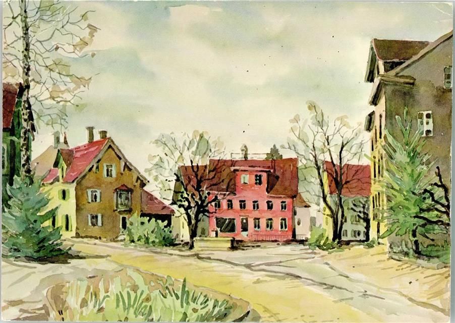 8600 Dübendorf Gebrauchsspuren Dorfplatz sign. E. Puelma Aquarell