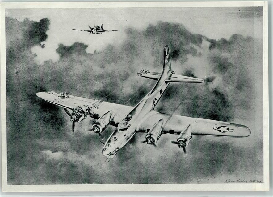 8600 Dübendorf Künstlerkarte Fliegerpostharte Serie 11 Angeschossene Fliegende Festung im Kampf sign. A Rosenthaler