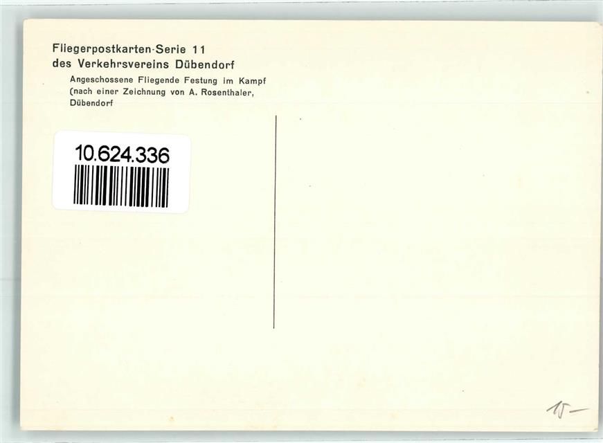 Dübendorf, Fliegerpostharte Serie 11 Angeschossene Fliegende Festung im Kampf sign. A Rosenthaler