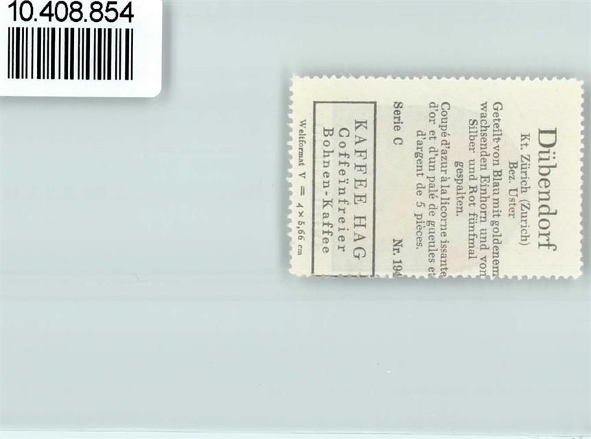 8600 Dübendorf - Vignette Wappen Kaffee Hag ca 1920-1940 Einhorn