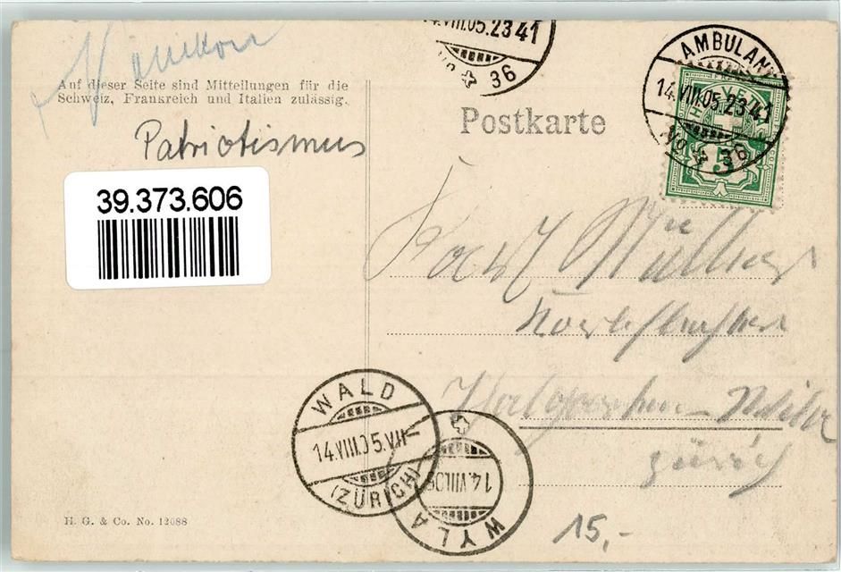 8606 Greifensee 1905 - Mord von Greifensee 1444 Bahnpost 2341 No 36