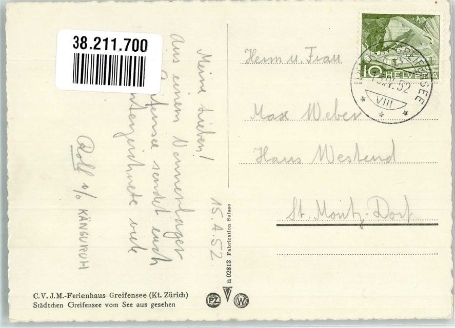 8606 Greifensee 1952 Foto AK Pension C.V.J.M. Ferienhaus