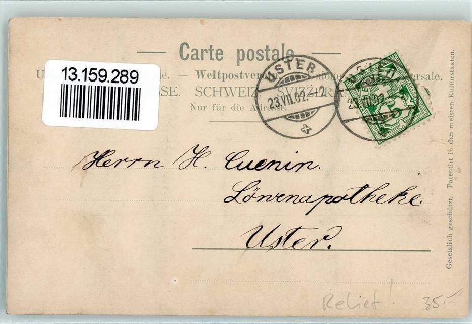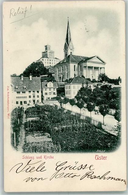 8610 Uster 1902 Relief AK Schloss Kirche