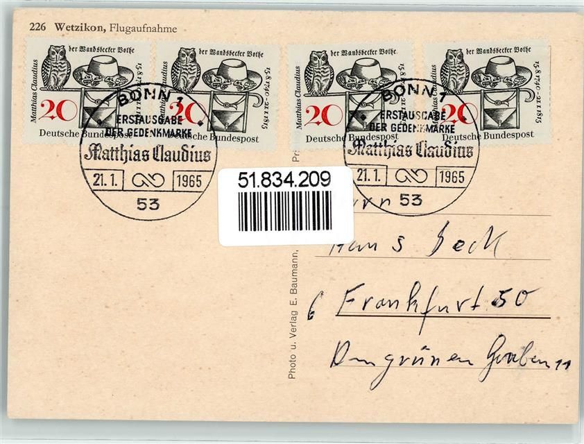 Wetzikon ZH, Fliegeraufnahme Sonderstempel