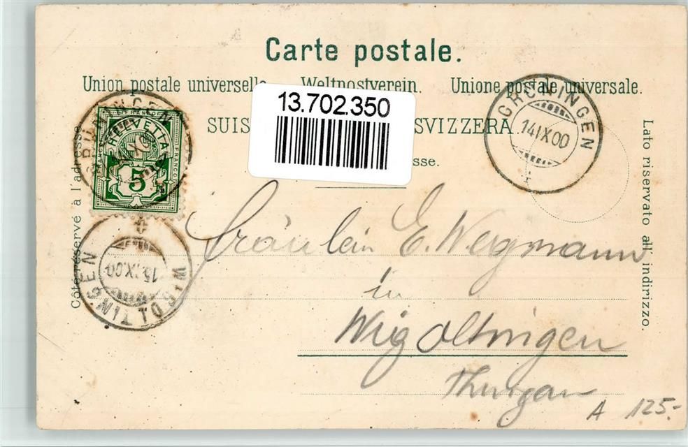 8627 Grüningen 1900 BOAKC Lithographie Kirche Schulhaus Verlag Künzli Nr 733