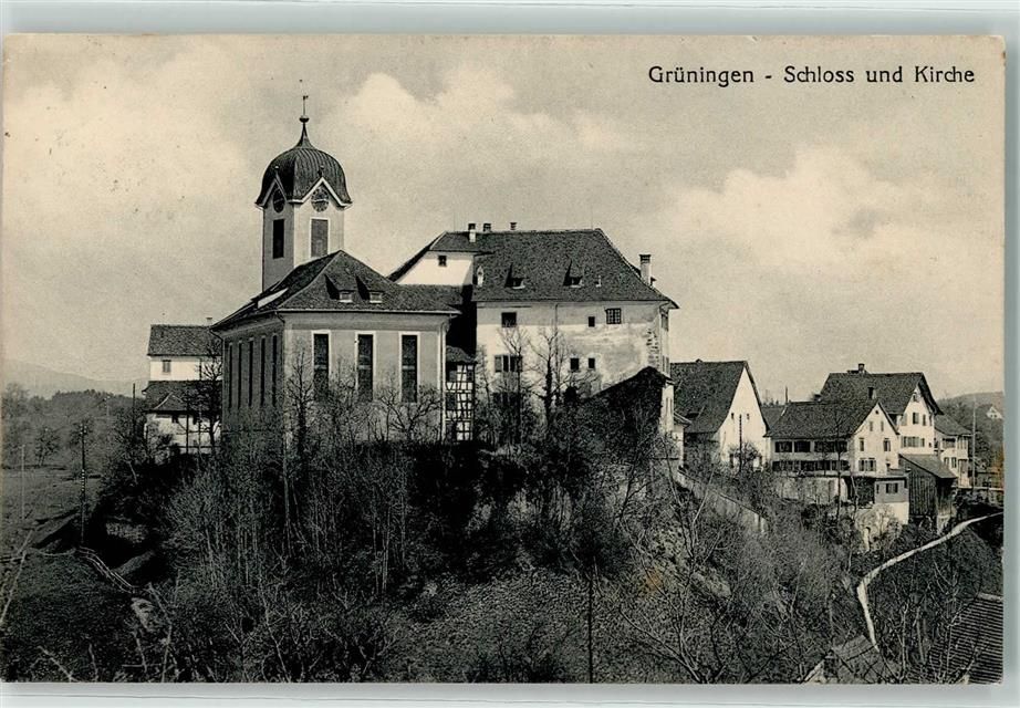 8627 Grüningen 1918 - Schloss und Kirche
