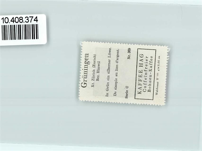 Grüningen, Vignette Wappen Kaffee Hag ca 1920-1940 Löwe