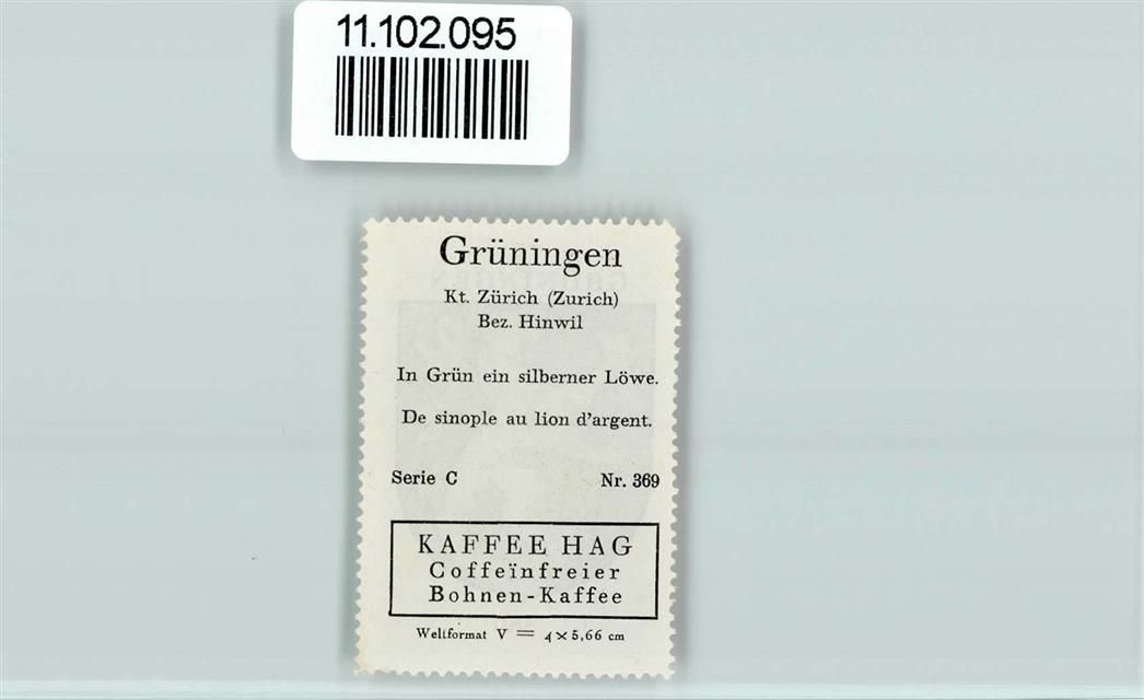 Grüningen, Vignette Wappen Kaffee Hag ca 1920-1940