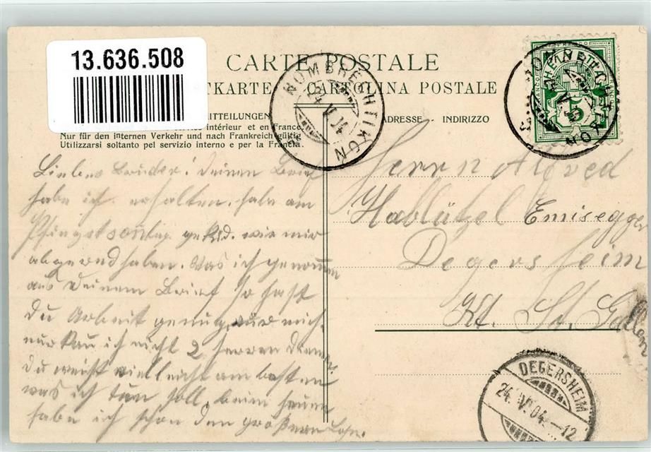 8634 Hombrechtikon 1904 - Kirche Sonnenhof Bahnhof Poststrasse Pfarrhaus