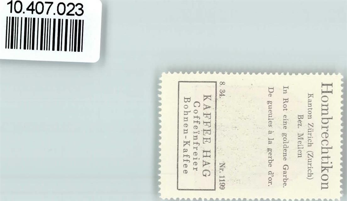 8634 Hombrechtikon - Vignette Wappen Kaffee Hag 1920-1940 Garbe