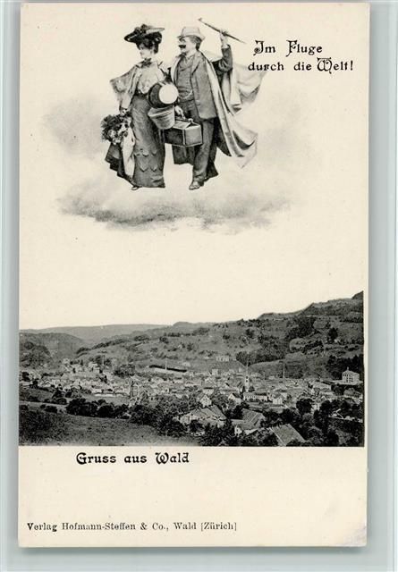 8636 Wald ZH 1912 Fotomontage AK Fliegende Menschen mit Gepäck , sehr gute Erhaltung AK