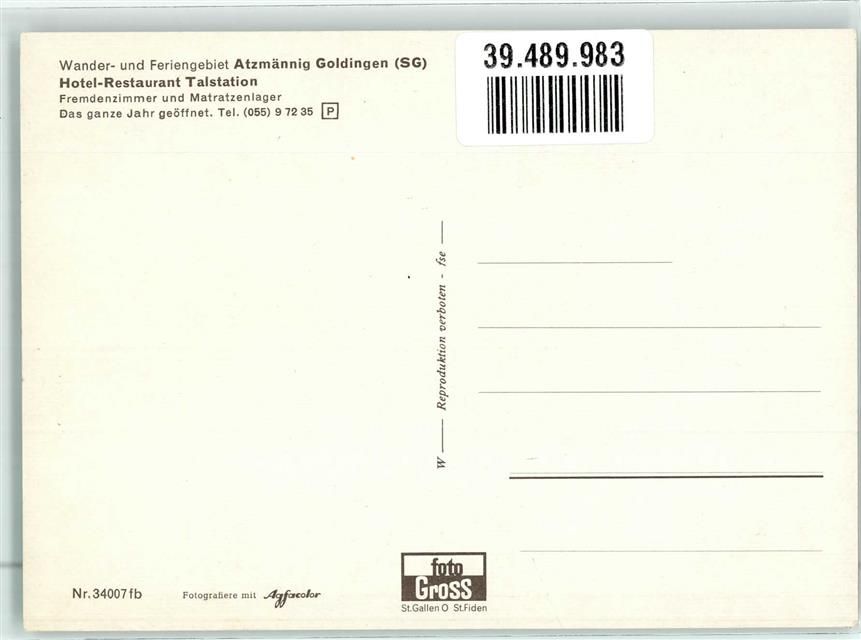 8638 Goldingen - Gasthaus Talstation Atzmännig