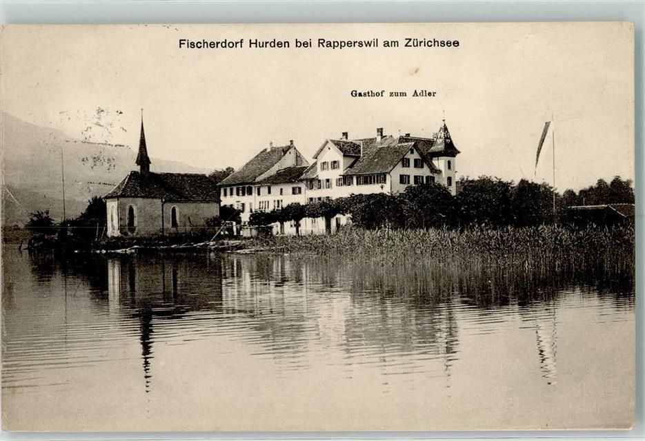 8640 Hurden 1915 - Fischerdorf Hurden bei Rapperswil am Zürichsee Gasthof zum Adler