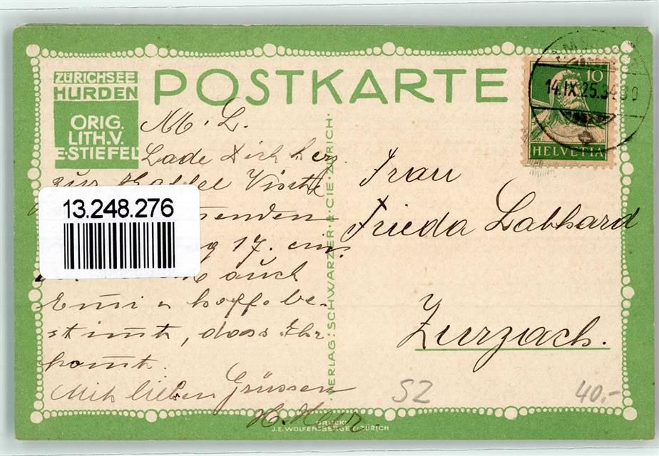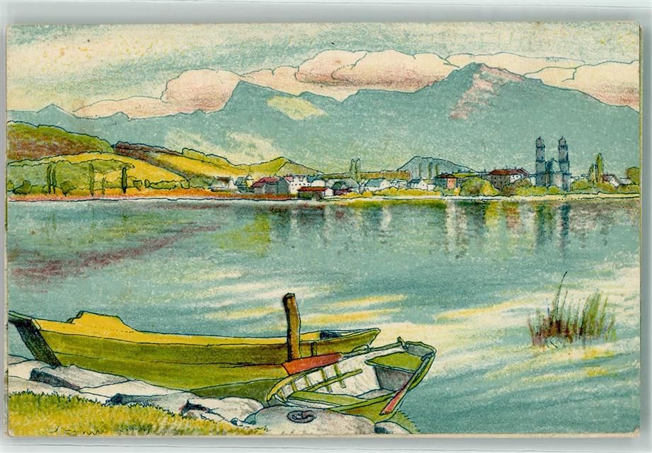 8640 Hurden Künstlerkarte Zürichsee sign. E. Stiefel