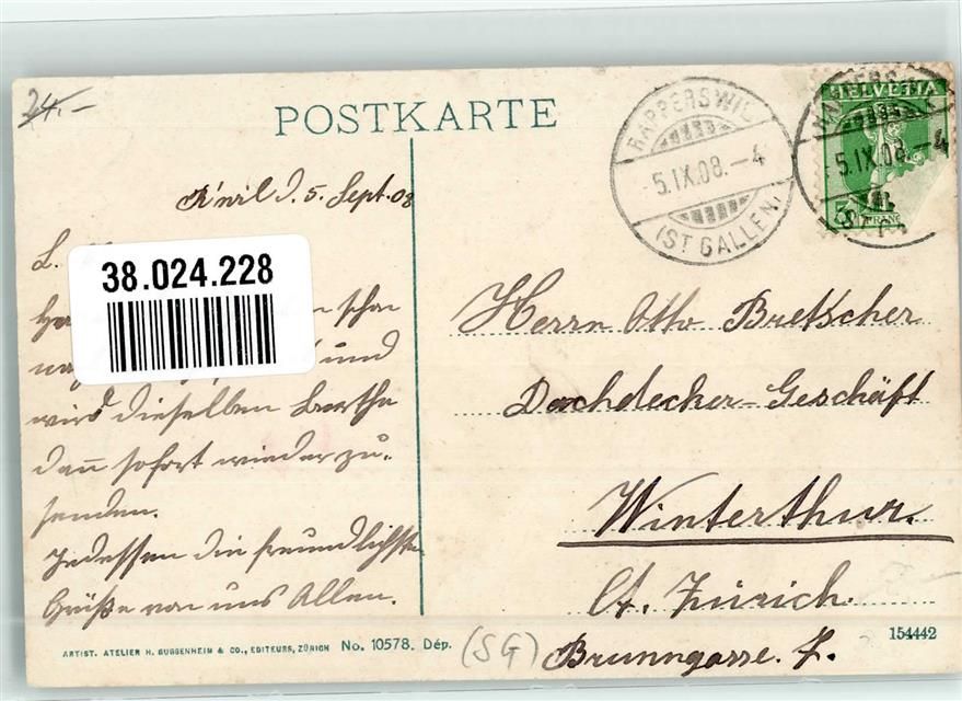 8640 Rapperswil SG 1908 Foto AK Schloss